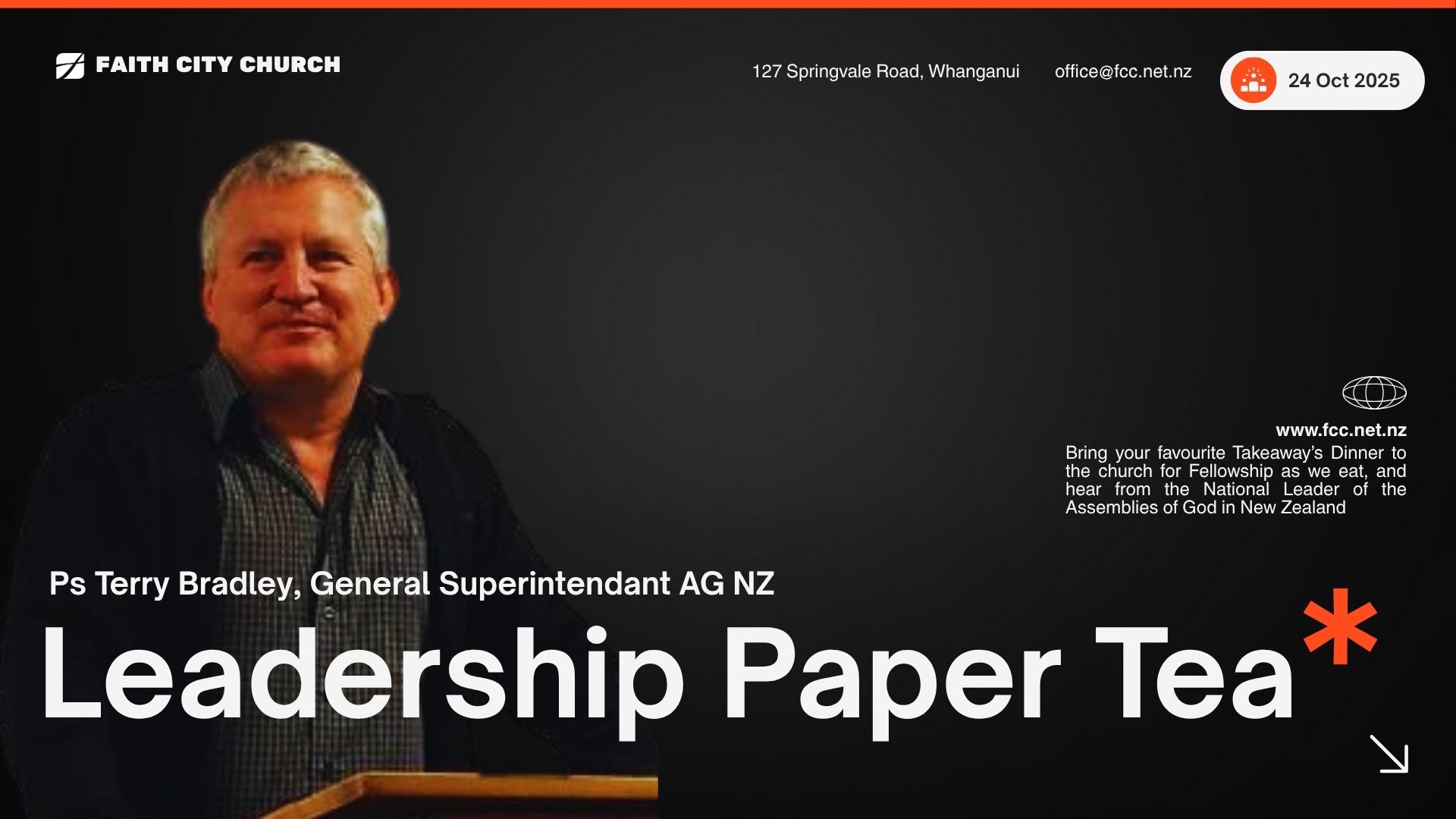 Bring your favourite takeaways dinner to the church for a time of fellowship as we eat together, then we will hear from our guest speaker, Ps Kem Price from Auckland.